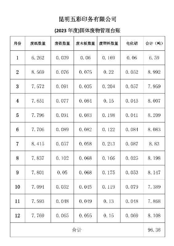 【公示】昆明五彩印務(wù)有限公司——2023年度固體廢物處理臺帳